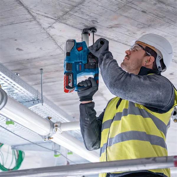 The GBH 18V-22 Professional is packed with power and features, elevating the drilling experience to a next level, with extra efficiency, safety and control. More holes are drilled per fully charged battery and stable power output delivered by its potent Bosch 18V brushless motor combined with constant speed. Includes enhanced safety against accidental jams and reduced vibration exposure due to KickBack Control and Vibration Control, respectively. It also contributes to a dust-free work condition through its attachable Auto Power GDE 18V-12 /GDE 12 extractor.