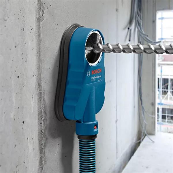 The GDE 68 Professional dust guard is the universal solution for drilling large diameters of up to 68 mm. It enables clean and tidy work, reduces cleaning times, and improves the user´s safety protection. For high convenience and flexibility, it can be quickly and easily attached directly onto walls, can be adapted for various working positions, and is designed for use with the Bosch Click & Clean System. Its compatibility with all drilling tools guarantees universal use.