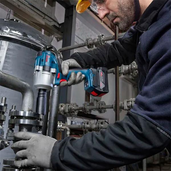 The GDS 18V-780 Professional is the ideal impact wrench for plumbers, metal fabrications workers, railway/metro workers, construction workers and car repair workers. It is suitable for bolting flange pipes, maintenance work on railways/metros and the underground, bolting beams and concrete in bridge construction, and bolting on wheels, the chassis, the transition gearbox, and the engine when repairing trucks, buses and cars