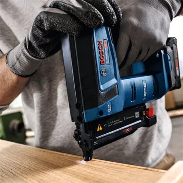 The GNH 18V-35 is intended for wood applications and can be used for delicate decorative trims and molding on furniture and buildings, fixing glazier beads into furniture or doors/indoor walls. Recommended pins: Bosch PN23 G: 15, 19, 30, 35 mm; 23 ga / 0.6 mm