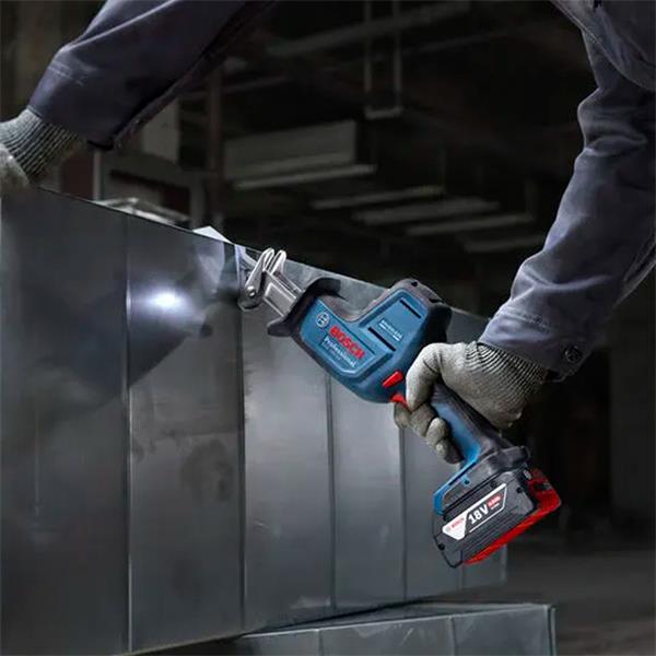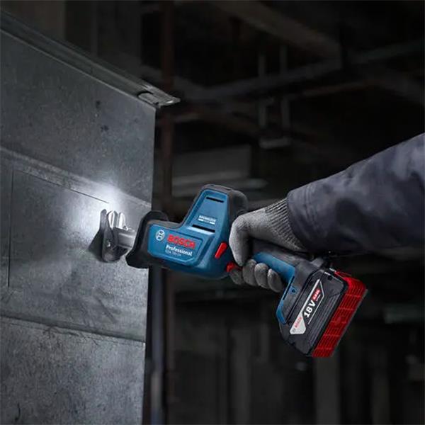 Cutting off materials in narrow spaces or near walls can be awkward and difficult. The Bosch GSA 18V-24 Professional cordless reciprocating saw takes the hassle out of such cutting jobs thanks to its compact and ergonomic design. Ideal for handling tight spaces, this all-purpose saw has a pivotable footplate for cutting pipes and an LED that effectively lights up the cutting line in dark spaces. And with an outstanding power-to-weight ratio, it’s easier to make powerful cuts. What’s more, this tool cuts fast without jamming owing to its optimized stroke rate and stroke length. The GSA 18V-24 is comfortable to use and fights fatigue with its innovative counter-balance mechanism that minimizes vibration.