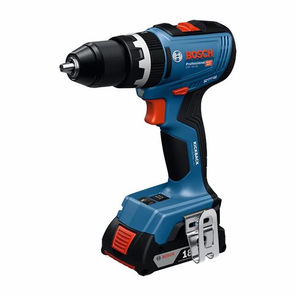 If you’re looking for a versatile cordless drill driver that delivers the power you need for even tough screwdriving applications, look no further than the Bosch GSB 18V-65 Professional drill driver. It drills through metal, wood, or plastic with ease thanks to the improved torque of 31/65 Nm and 0-550/0-2100 min?¹ speed, and has an additional impact function for drilling into masonry. Tight, awkward spaces are no problem with this compact tool’s handy head length of only 175 mm. And we have your protection covered with switchable KickBack Control that prevents accidental tool kickback. Plus, you get even more illumination power for your working space with the dual working lights.