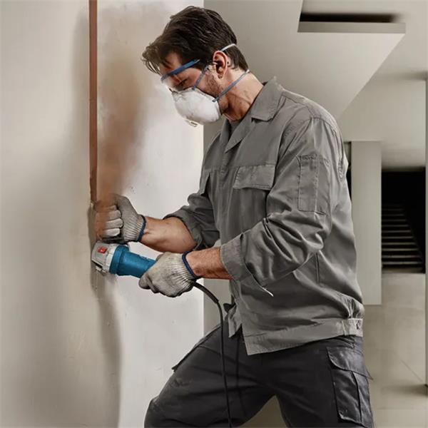 This corded small angle grinder offers solid performance for cutting and grinding. Its slim grip size enables improved handling for easy use. The small angle grinder also has a flat gear head that offers good results even in tight spaces. Furthermore, specially developed ventilation slots provide improved dust protection and long lifetime. This tool is intended for cutting and grinding metal, tiles, and bricks.