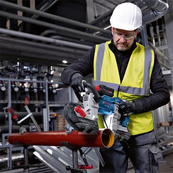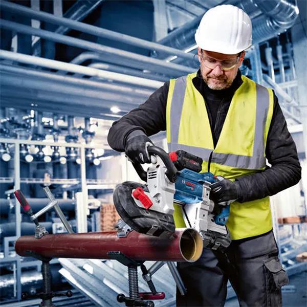 The GCB 18V-127 Professional is a powerful band saw with brushless motor, for sawing conventional materials, especially metal profiles and pipes. It is compatible with the Bosch Professional 18V System and with the multi-brand battery alliance AMPShare.