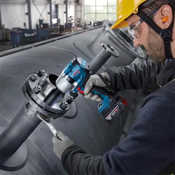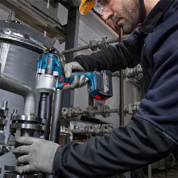 The GDS 18V-780 Professional is the ideal impact wrench for plumbers, metal fabrications workers, railway/metro workers, construction workers and car repair workers. It is suitable for bolting flange pipes, maintenance work on railways/metros and the underground, bolting beams and concrete in bridge construction, and bolting on wheels, the chassis, the transition gearbox, and the engine when repairing trucks, buses and cars.