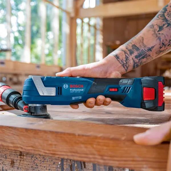 This top-performing, cordless multi-cutter is ideal for plunge cutting, trimming, sanding wood, cutting PVC, or scraping off paint. It works quickly and efficiently thanks to brushless motor technology and a high oscillating angle of 3.4°.