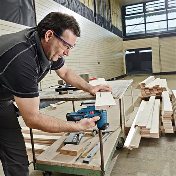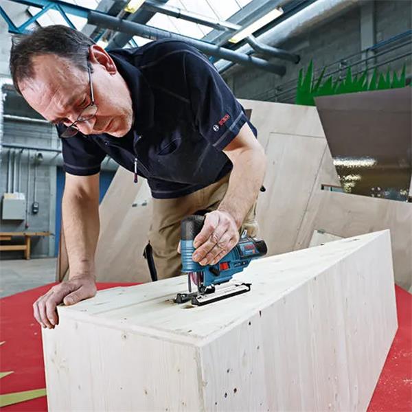 This cordless jigsaw is the compact choice in the 12 V category. Its barrel grip as well as a compact and lightweight design enable best manoeuvrability, even when cutting from underneath. The jigsaw’s grip is extremely close to its cutting line, delivering perfect handling during use. Furthermore, its tool-free Bosch SDS-system makes changing saw blades easy.