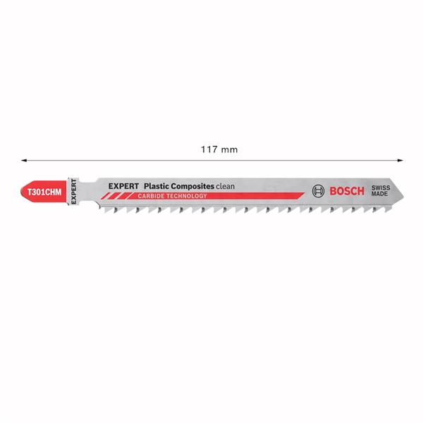 • These qualities make the Bosch EXPERT Plastic Composites clean T301CHM Jigsaw Blade the perfect choice for kitchen and bathroom building, and for WPC work. Its long life ensures it is great value while also offering a top quality result.