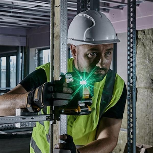 The DEWALT® Compact Cross Line Laser offers full battery compatibility across the entire 18V XR power tool series. With an impressive 55-meter max working range (up to 100m with detector*) and class-leading green beam technology, it provides outstanding visibility for the toughest jobsite environment.