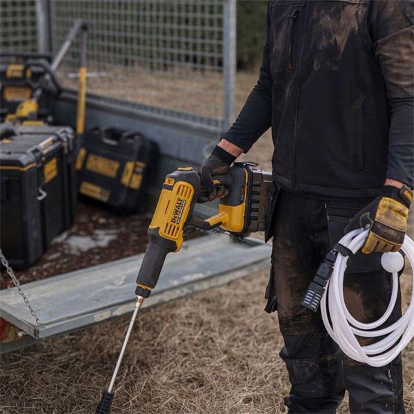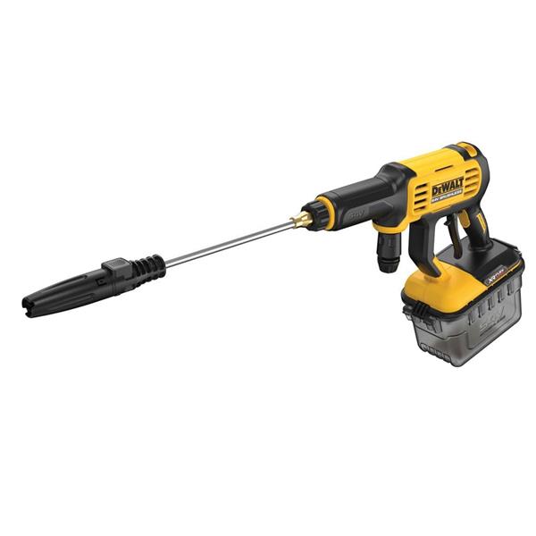 For portable cleaning on the jobsite or at home with 18X the cleaning power of a garden hose‡, the DEWALT 54V MAX* Power Cleaner is the ideal choice. This versatile tool can draw from any fresh water source with an included suction hose for when a garden hose is not easily accessible. The power cleaner can also be hooked up to your garden hose at home or on the jobsite with the convenient quick connect adaptor. Conveniently clean your tools and equipment as well as decks, boats, outdoor furniture, and vehicles with this all-in-one device. Find the right stream for the job with 4 nozzles included that can all be stored on the unit, plus a foam cannon to efficiently tackle a variety of cleaning tasks. Part of the 60V MAX* DEWALT system, this tool is a great addition to the professional's collection. Battery & Charger Sold Separately