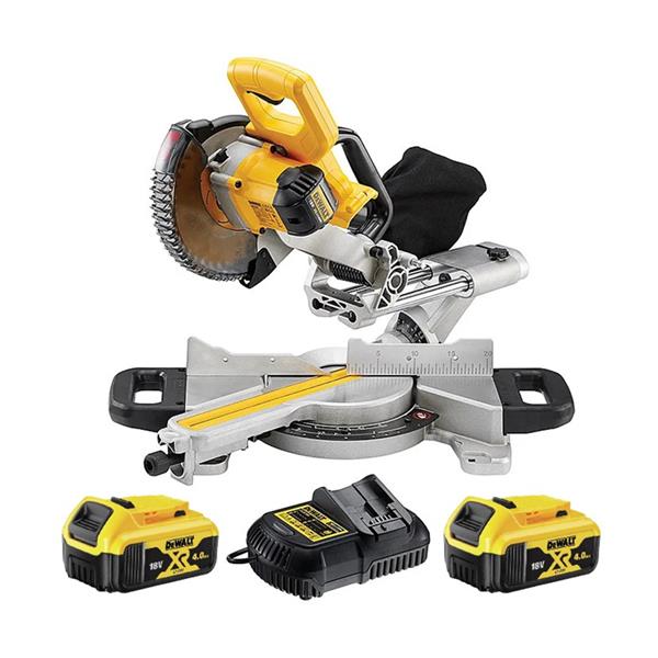 The DCS365 18V XR 184mm Sliding Miter Saw features an adjustment free XPS cut line indication for better accuracy and visibility. Adjustable stainless steel miter detent plate with 11 positive stops improves productivity and ensures cutting accuracy. Compact and lightweight construction for easy transporting and storage. With 2 X 4Ah batteries and charger.