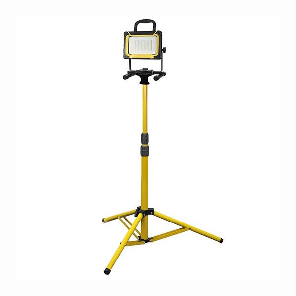 • The slim and lightweight die-cast aluminium lamp head is IP54 rated for water and dust ingress protection – while the impact resistant glass lens makes these site lights a durable solution. Its also fully adjustable and mounted on a sturdy floor stand – so can either be used as a pod light or mounted directly on to the telescopic tripod. Two twist grip locks enable the tripod height to be quickly adjusted between 1010mm and 2000mm.