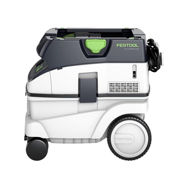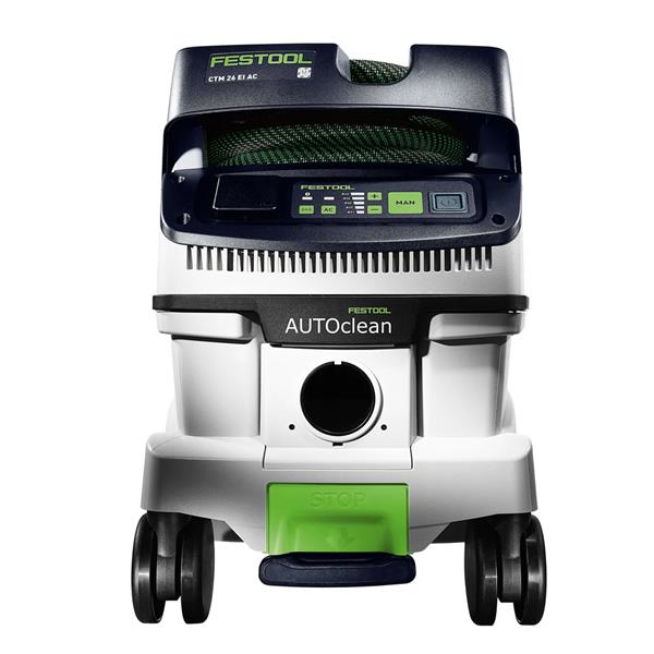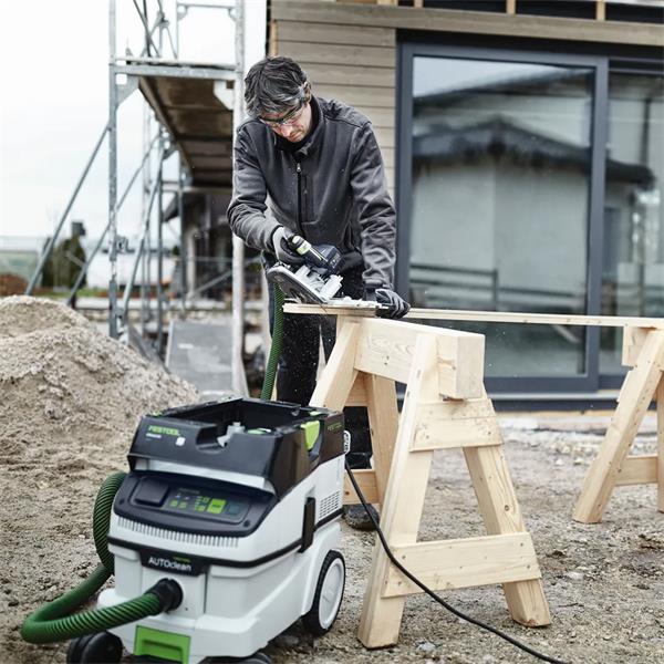 Compared with its predecessor, the CLEANTEC CTM 26 EI AC boasts more effective AUTOCLEAN main filter cleaning. This ensures a consistently high suction power, longer working intervals and a longer filter service life with lower maintenance effort. It comes with touch operation for intuitively controlling your extractor. It has a permanently installed Bluetooth® interface for starting the extractor using a Festool cordless tool or automatically starting it with optional remote control. Your extractor is also connected to the Festool app, which is where you can set cleaning intervals, for example. The smooth, anti-static suction hose can be handily stowed away in the integrated hose holder.