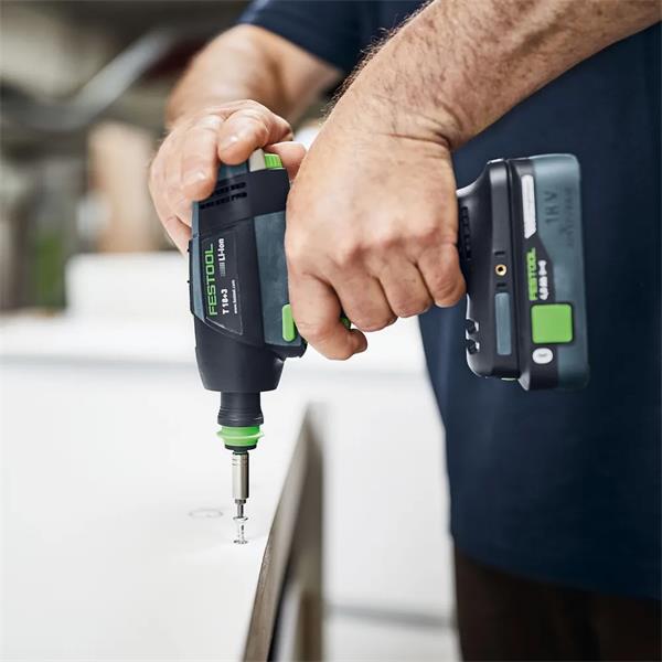 As with all cordless drills from Festool, the bits can also be inserted in the direct bit holder of the spindle on the T 18+3. - Six bits always to hand