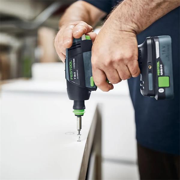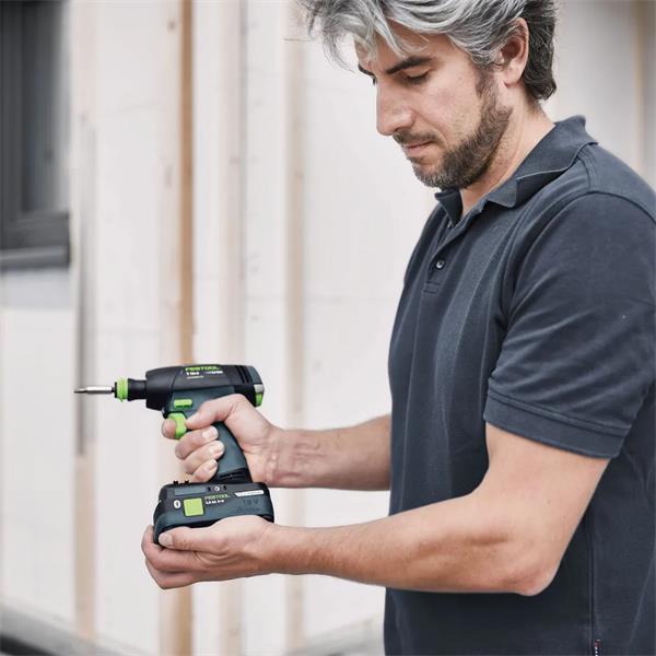 Enjoy full flexibility when drilling and screwdriving: the completely electronic torque adjustment, CENTROTEC quick-change system, as well as angle attachment, eccentric attachment and depth stop can handle any drilling or screwdriving task. The combination of the Li-HighPower battery pack and maintenance-free brushless EC-TEC motor means that the T 18+3 cordless drill is light, long-lasting and durable. The cordless screwdriver and battery pack are completely covered with the Festool SERVICE, giving you peace of mind for your day-to-day work. Available in T-design or – depending on personal preference – in the unique C-design as the C 18.