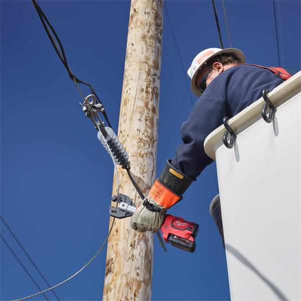 • FORCE LOGIC™ hydraulic cable cutter cuts cables in less than 3 seconds with 53 kN of force.
