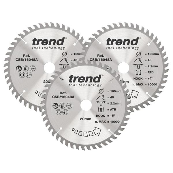 Trend Craft Pro Saw Blades Triple Pack - 160mm diameter - Circular Saws CSB/16048A - CSB/160/3PK