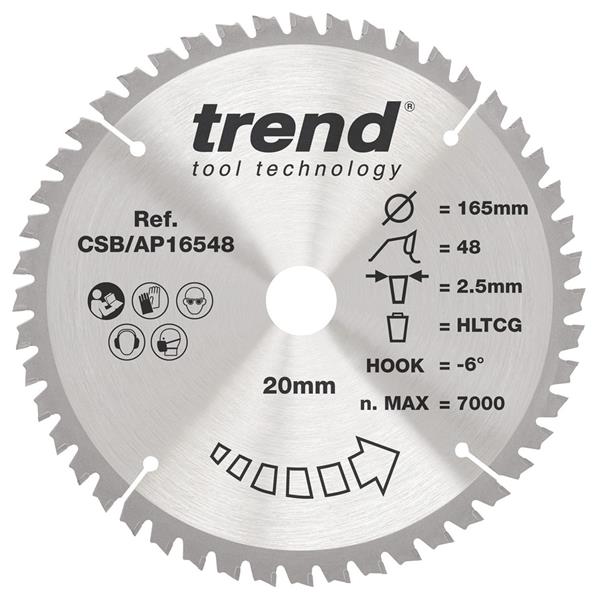 Trend Craft Almin & Plastic Saw Blade - 165mmD x 20B x 48T- CSB/AP16548