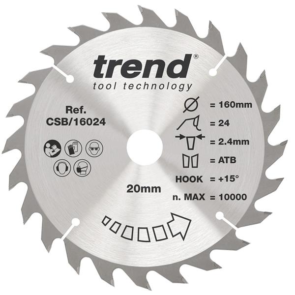• 1 x Trend Craft Combination Saw Blade - 160mmD x 24T x 20B x 2.4Kerf - CSB/16024