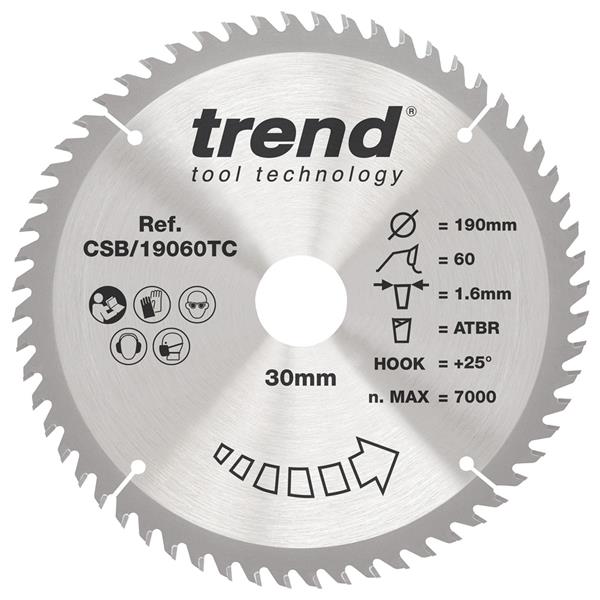 • 1 x Trend Craft Saw Blade - 190mmD x 60T x 30B X 1.6Kerf - CSB/19060TC