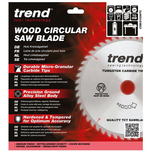 Trend Craft Thin Saw Blade - 210mmD x 36T x 30B X 1.8Kerf - CSB/21036TC