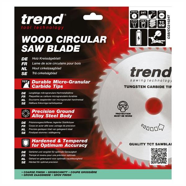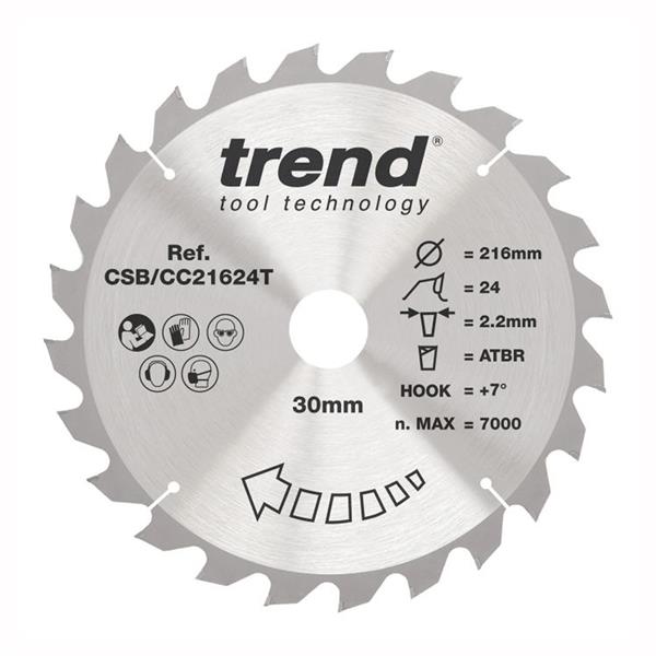 • 1 x Trend Wood Cordless ATBR Mitre Saw Blade 216mm x 30mm x 24T - CSB/CC21624T