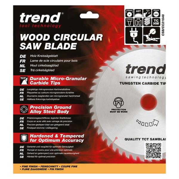 • 1 x Trend Wood Mitre Saw Blade 216mm x 30mm x 48T - CSB/CC21648